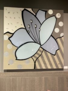 Our collection of modern paintings are unique. They are hand painted on the back side of clear acrylic which gives the colors a rich and vibrant finish that will last for many, many years without fading. It amplifies the vibrancy of the colors and doesn’t need a frame which adds a simplicity and clean modern finish that will work well with modern interiors.